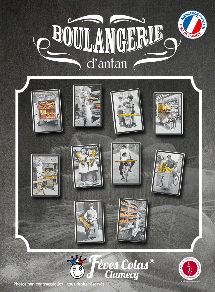 Collection de 10 fèves en forme de cartes postales anciennes colorisées sur le thème du pain