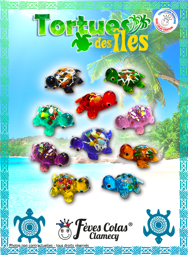 Des adorables petites tortues en verre multicolore aux reflets dorés.