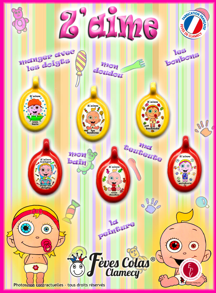 Collection de 6 fèves pendentifs façon camé avec des décors enfantins